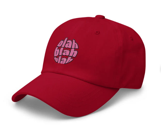 Fie că ești în mood de „nu azi” sau pur și simplu vrei să-ți păstrezi misterul, șapca „Blah blah” e declarația ta de independență stilistică.